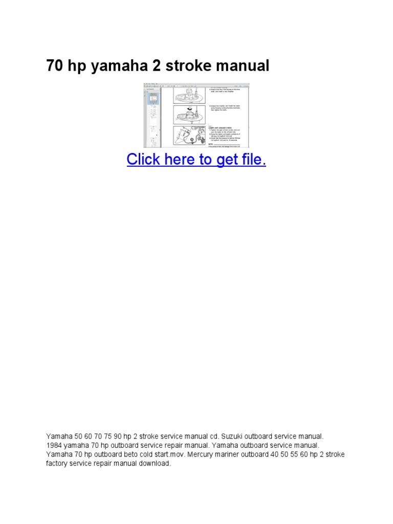 The yamaha outboard motor service manual downloads for the above listed models describes the service procedures for the complete engine. Operation, service, repair & shop manuals for many models, some available as free downloads. A downloadable yamaha outboard marine repair manual is a digital book of repair instructions that was developed to guide the mechanic in the process of maintenance, fixing and … Yamaha marine outboard 6v 8v download: Sep 29, 2016 · download a factory yamaha outboard repair manual.